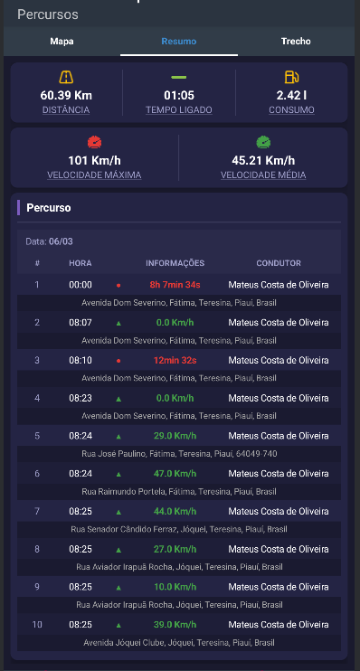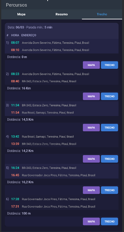 • Resumo e Trechos: Otimizamos o layout das abas de Resumo e Trecho, priorizando os dados mais importantes da sua operação.