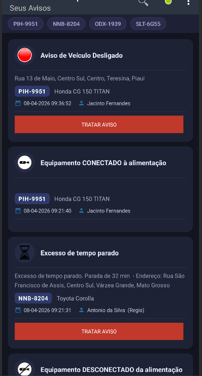 • Busca Ágil: Melhoramos o layout de avisos e aprimoramos a pesquisa rápida por placa, tornando a localização de ativos muito mais veloz.
